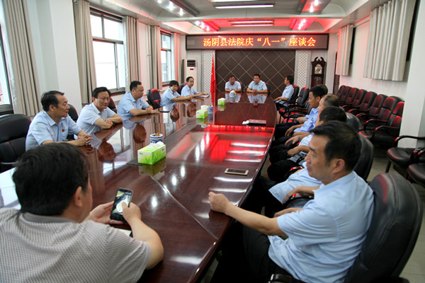8月1日,汤阴法院组织全院复转军人干警参加庆八一座谈会