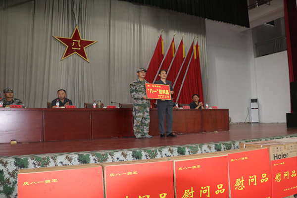 为进一步深化涉军维权“汤阴经验”,扎实做好司法拥军工作,推动新时代军民融合深度发展新局面。“八一”建军节前夕,安阳市中级人民法院党组成员、副院长王韶方,汤阴县法院党组书记、院长苏洪涛带领干警一行,于7月30日上午深入驻汤部队开展“送法进军营”慰问活动,向部队官兵送上生活慰问品,致以节日的慰问和祝福,受到官兵的热烈欢迎。