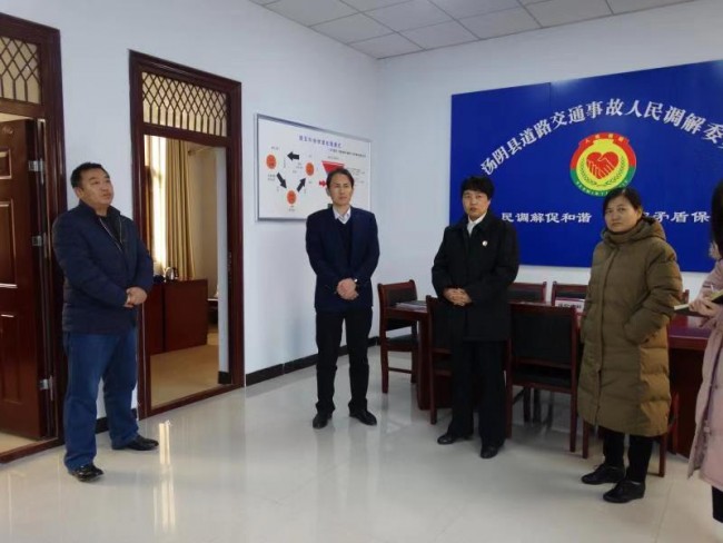 12月7日下午,安阳中院党组成员、副院长王韶方,民二庭庭长徐宏阁等一行四人莅临汤阴法院调研督导道交一体化改革工作,参观了该院平台办公场所,并与县公安局、司法局相关人员及律师代表进行了座谈。汤阴法院党组书记、院长苏洪涛,党组成员、副院长石红等陪同。