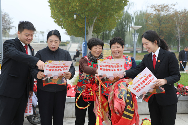 为大力弘扬中华民族尊老敬老的传统美德,切实维护老年人合法权益,重阳节前夕,汤阴法院干警走进人和公园,为老年人送上了一份丰厚的“法治大礼包”。