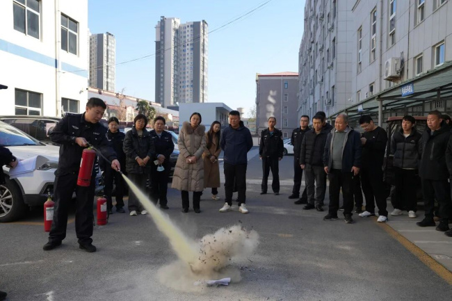 室外实操阶段,消防教官现场演示干粉灭火器“提、拔、握、压”使用要诀,干警上手实操,切实筑牢初火扑救能力基础。