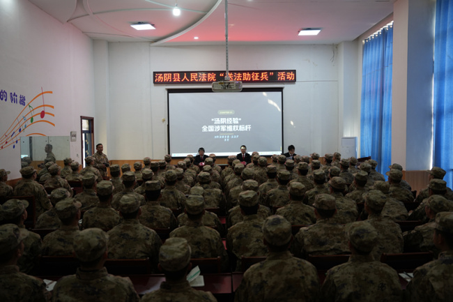 一身戎装赴疆场,法治护航守后方。为持续巩固深化“汤阴经验”,增强入伍新兵法治意识、提升法律素养,汤阴县法院开展了“送法助征兵”活动,为2026年春季预定新兵开展法治教育。